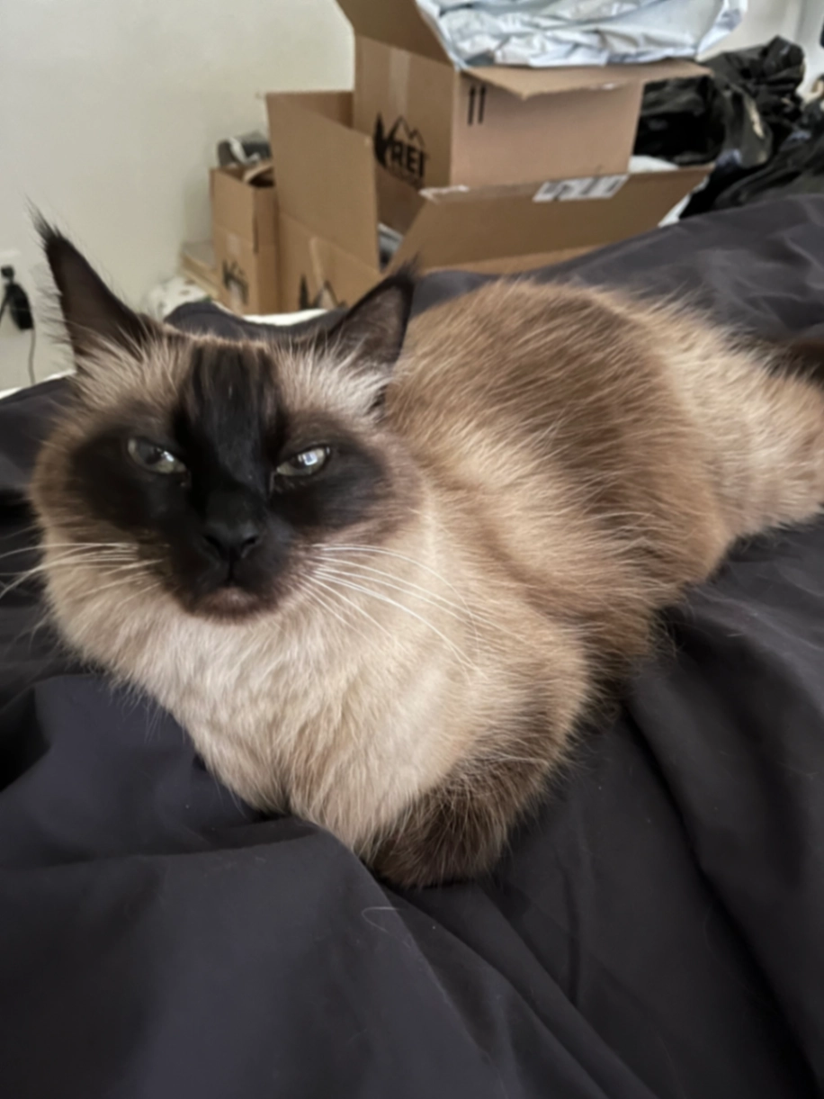 Cody is a Siamese cat, male has a black shape on his face like Texas or a thick cross. His ears, tail and boots are black. He is very shy, but sweet, and he went missing on January 12th, 2026. He was chased away from home by a neighborhood cat.