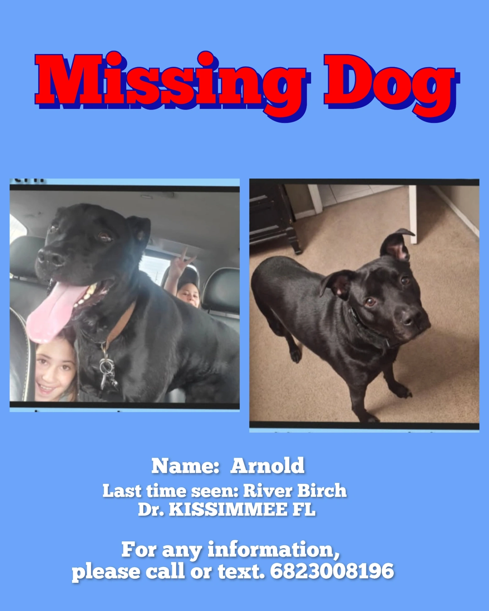 WayneReunited after1d, 8hThe flyer that you made was the reason we were able to find him because we posted the flyers to people all around the neighborhood and someone who was not on social media saw the flyer and had him.