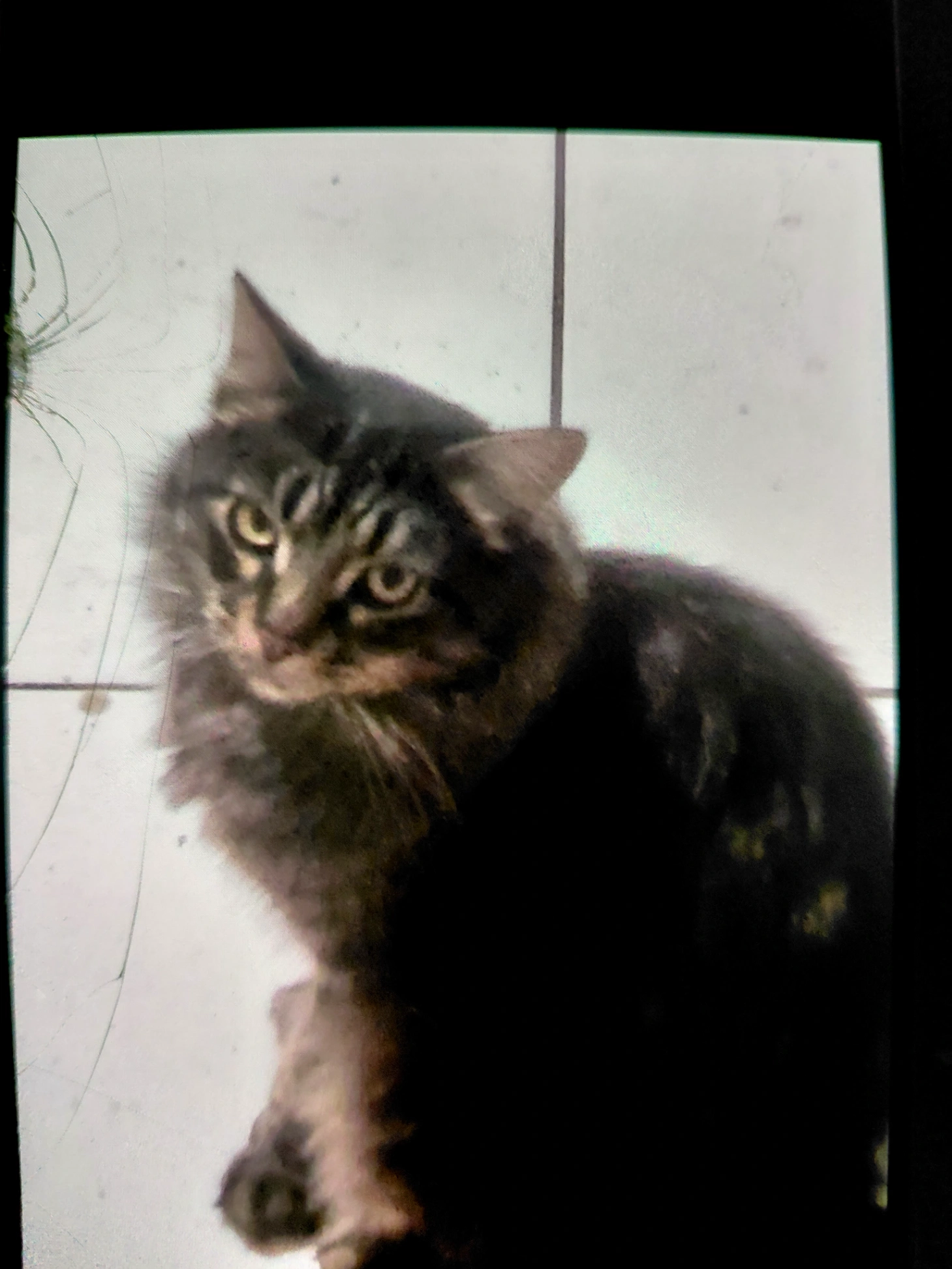 Black/Gray 2 year old male Tabby. Has been neutered and is chipped.