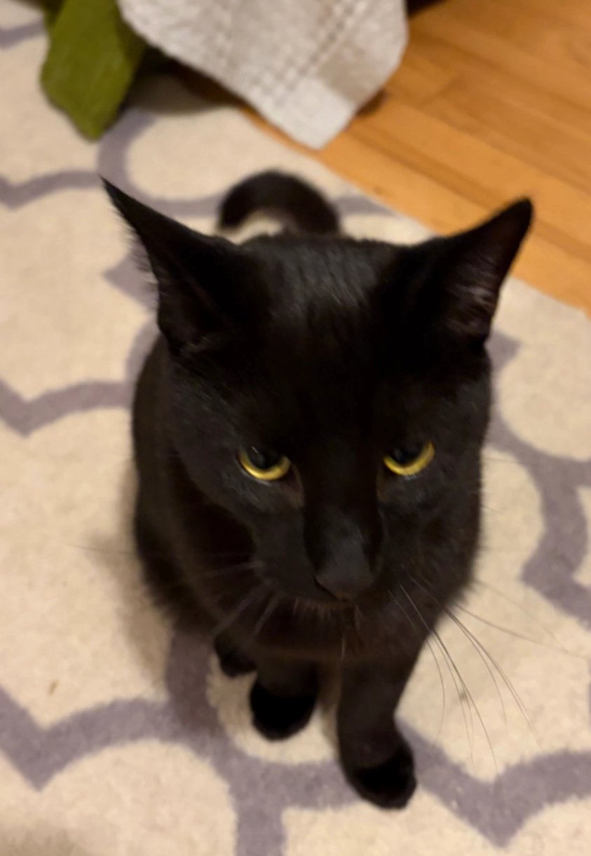 Black female cat 10 months old and about 10 lbs