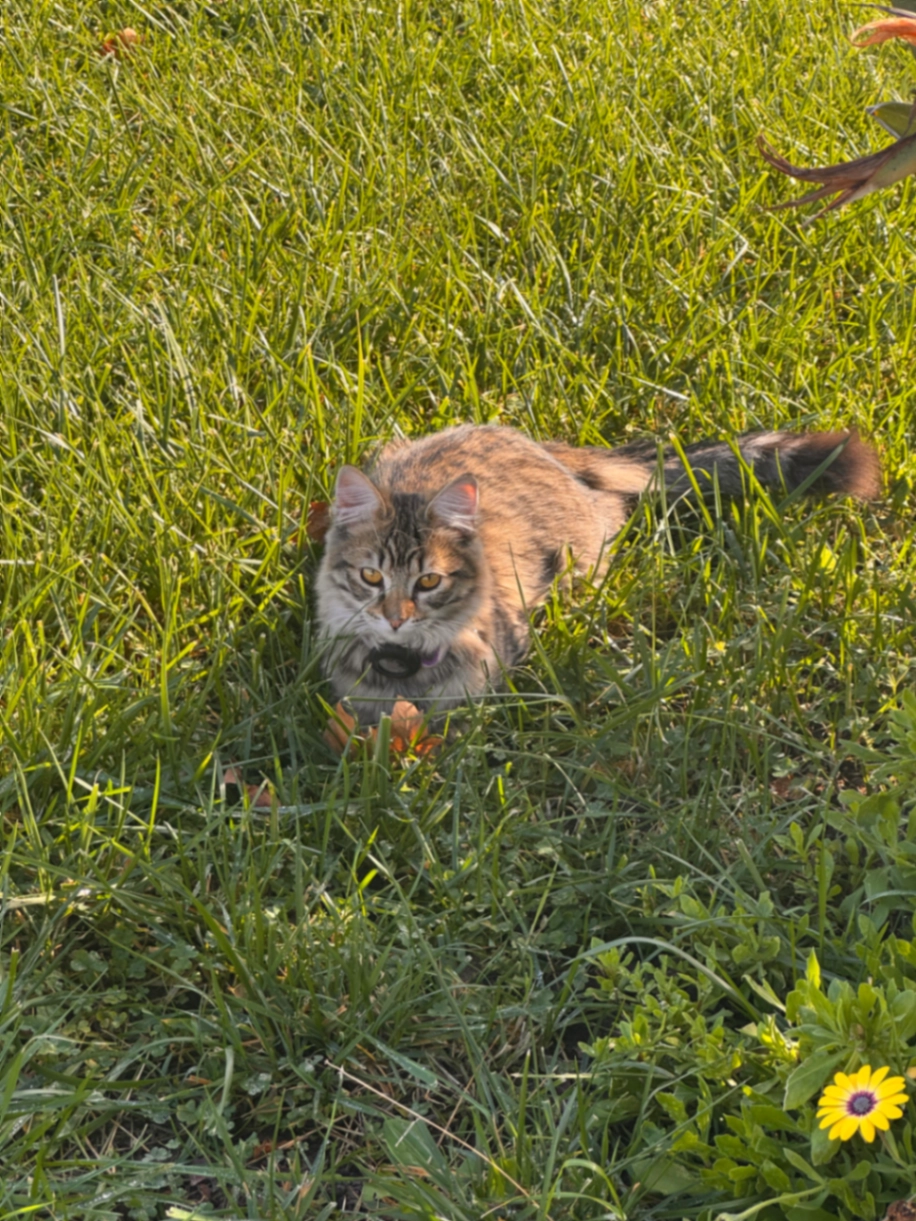 She has yellow eyes, is about 10months, a bit small, and is chipped
