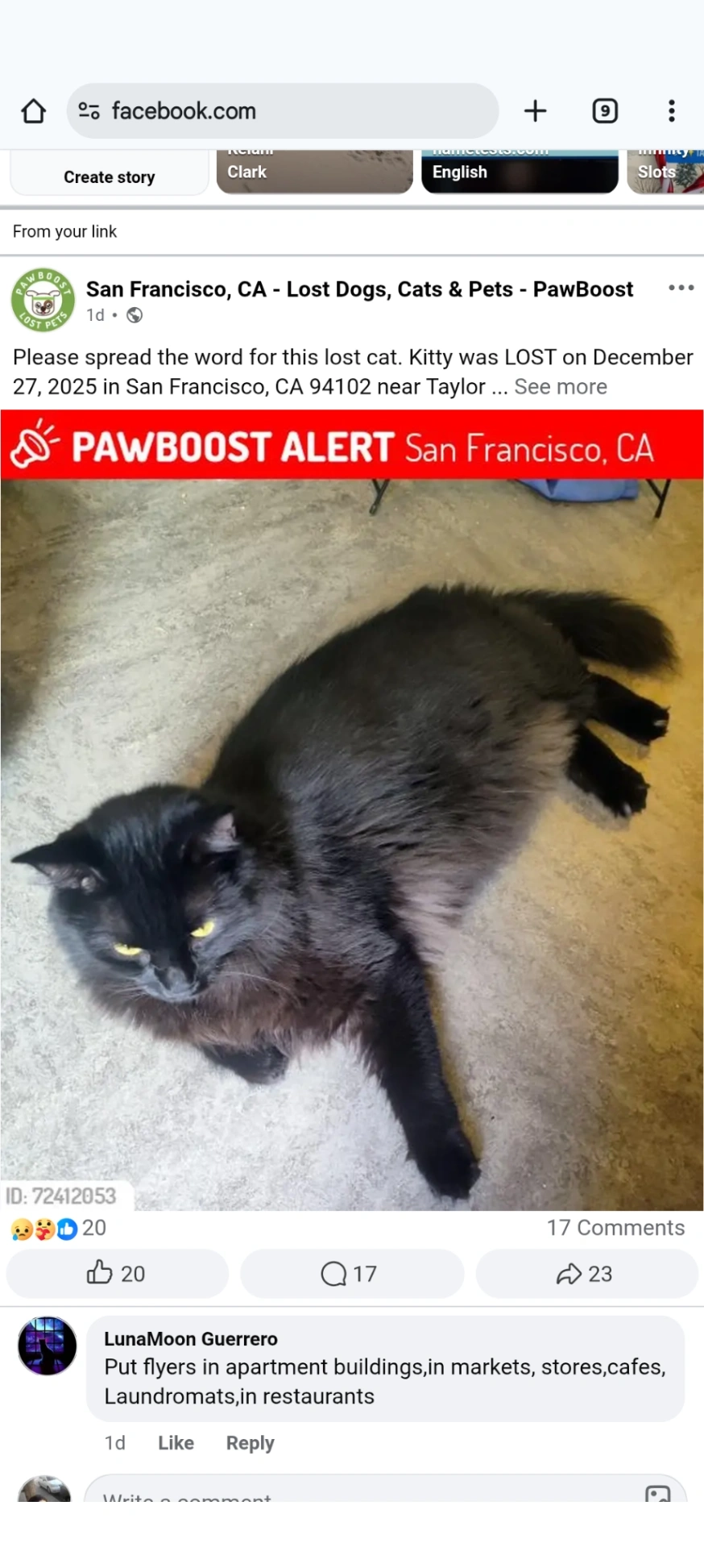ZoeeReunited after3d, 14hThank you so much for this service. The information provided helped us not to lost our minds during the time our cat was lost!