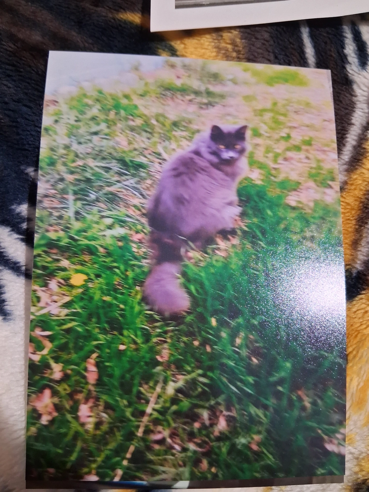 He has long gray hair and yellow eyes. He has a chip but it was registered in Texas. I adopted him from a soldier that was about to deploy. So he has records with surf city vet.