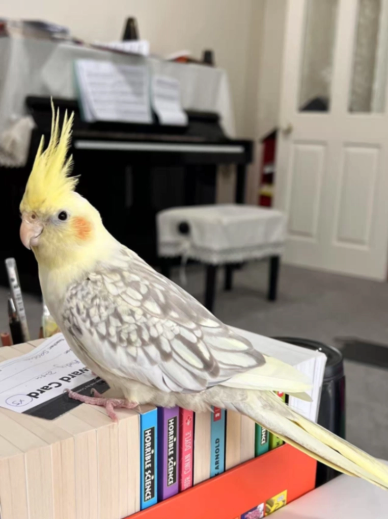 • Appearance: Yellow head and crest, orange cheeks, pearl-grey patterned wings and tail.