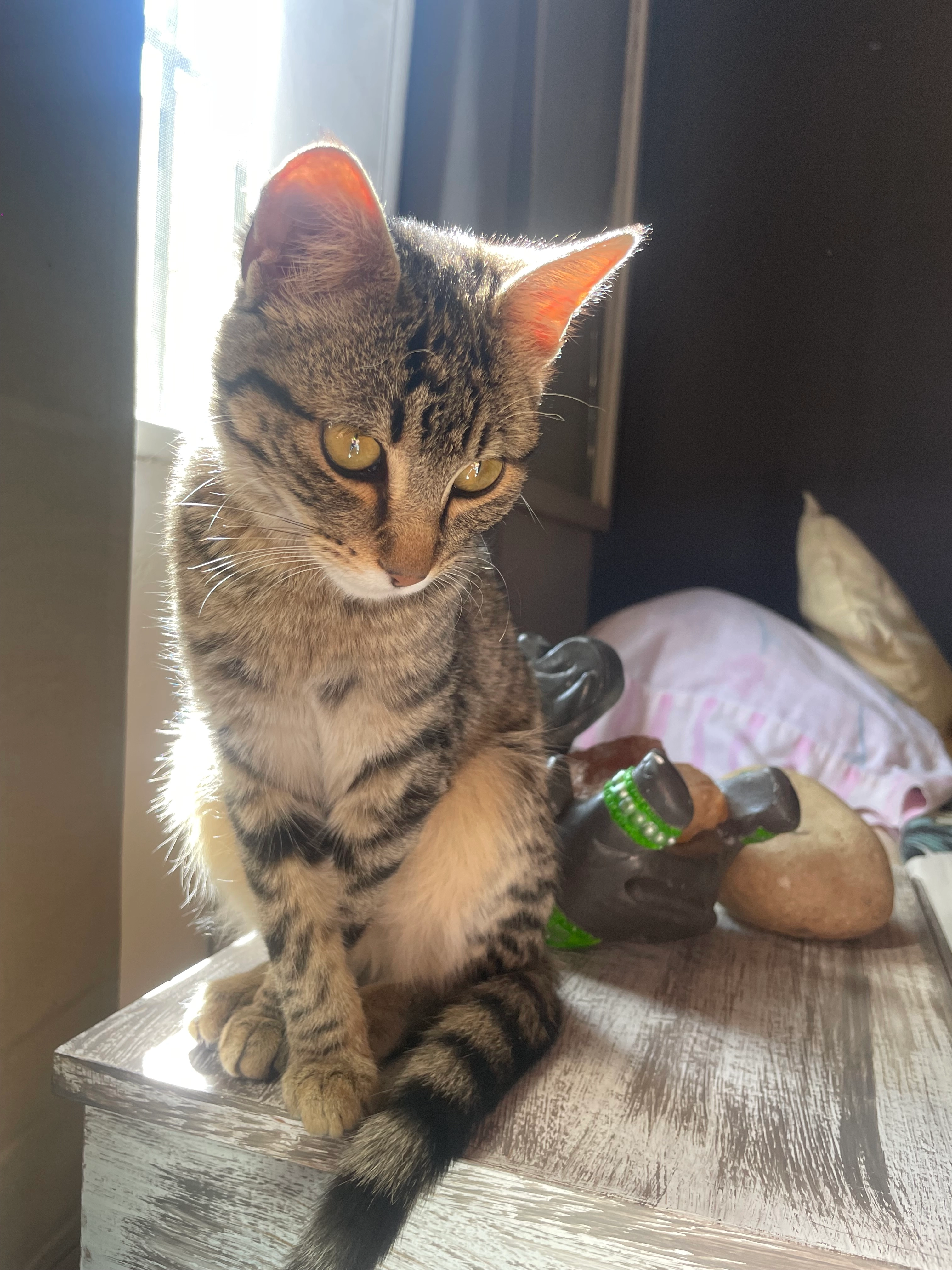 Le falta pelito en una zona del cuello porque fue operado de un tumor. Precisamente por eso no tenía collar. Toma medicación diaria y es muy importante que siga su tratamiento 🙏🏻