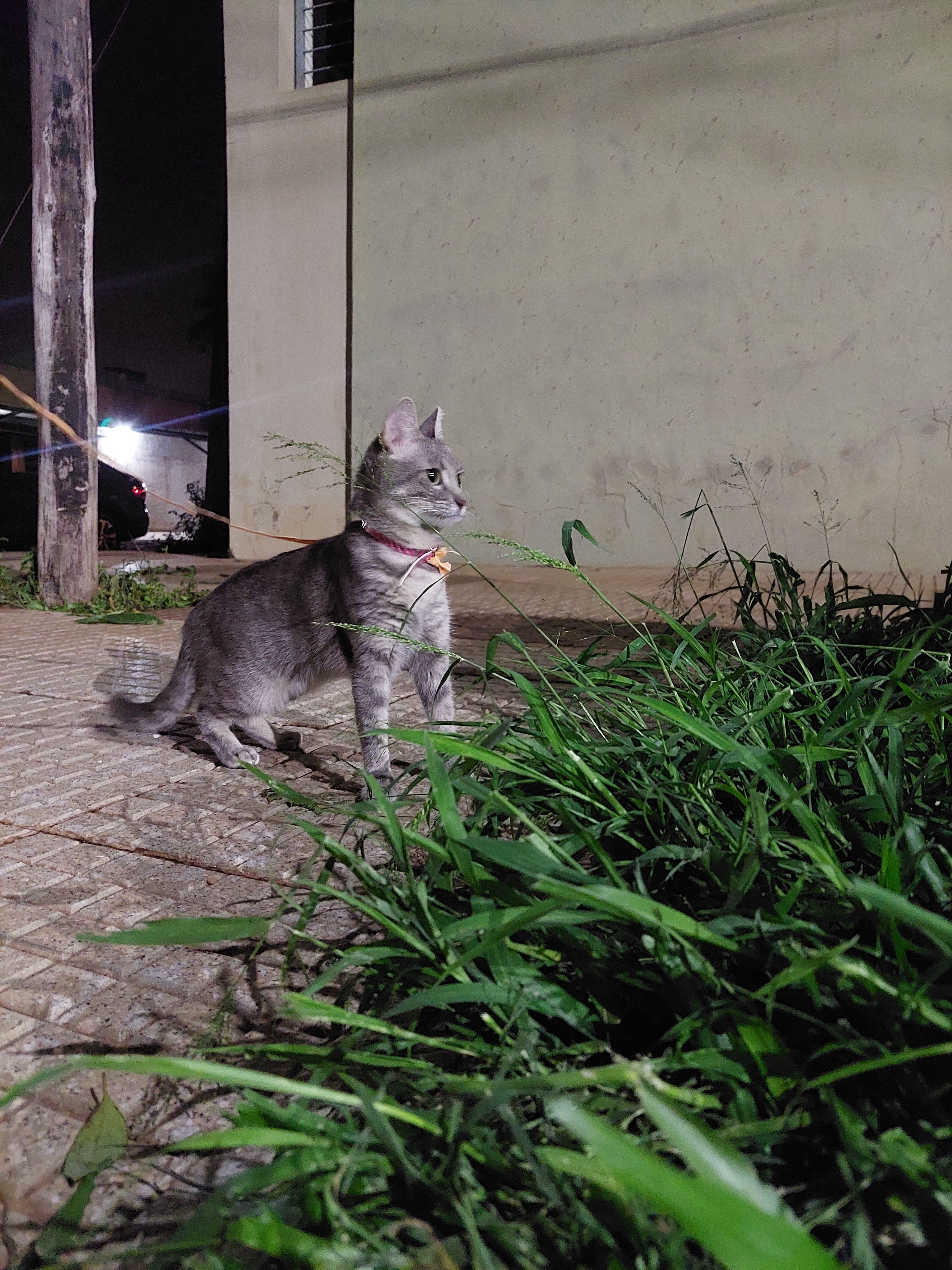 Es una gata gris, tiene 3 años de edad pero es chica de tamaño por lo que puede parecer más joven. Está gordita y se la ve saludable, abajo del mentón tiene una marca chica sin pelo, como una cicatriz