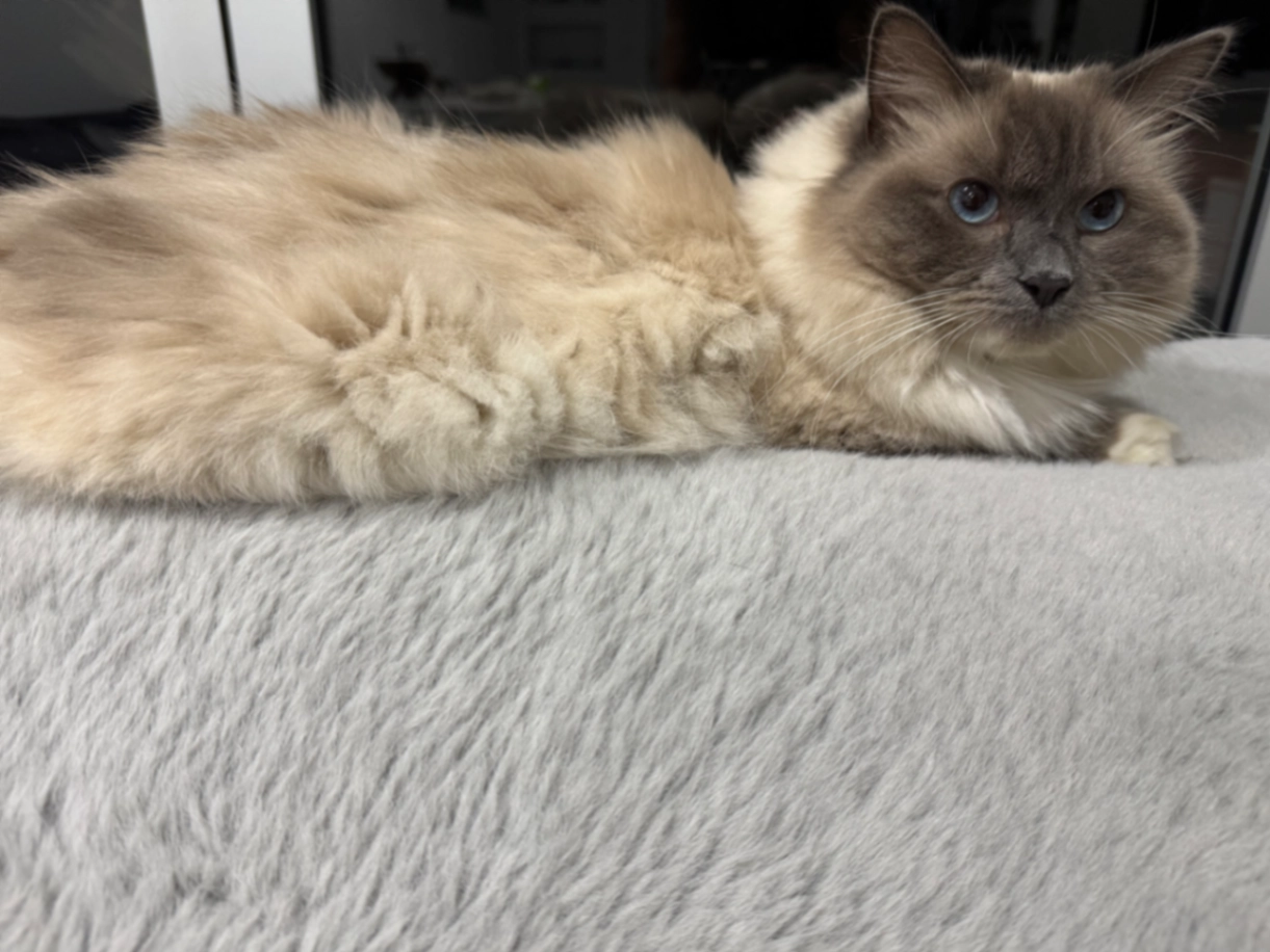 She is female, 1.5years old. Not microchipped and no collar. Shaved a month ago because of matting, so body hair shorter than her head and feet. Doesn’t like to be held too often, only on her terms.