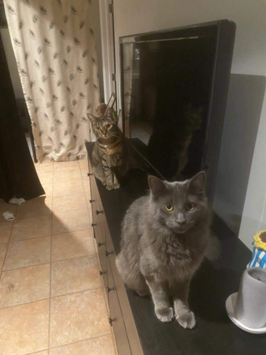 Grey and fluffy, main coon mix. White spot on upper chest. About 8 months old, male. Last seen Monday January 5 at around 8pm.