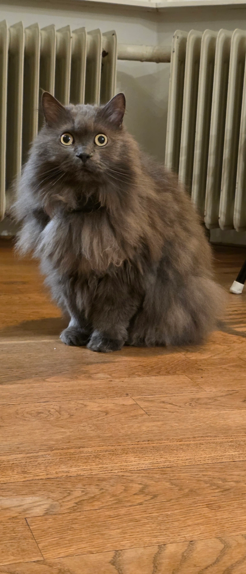 Een fluffy kat een beetje schichtig hij is getchipt en voor het laatste gezien op de emmakade in Leeuwarden