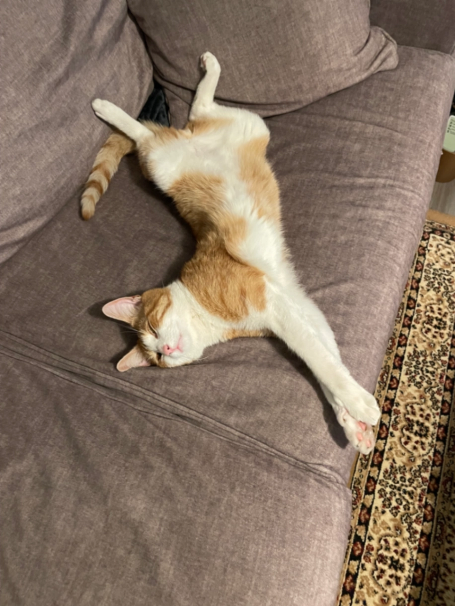 Cyperse kater, gecastreerd, geen halsband, wit kinnetje, flinke stevige kat, niet dik. Hij is 11 jaar, kan heel irritant mauwen maar is heel lief en aaibaar