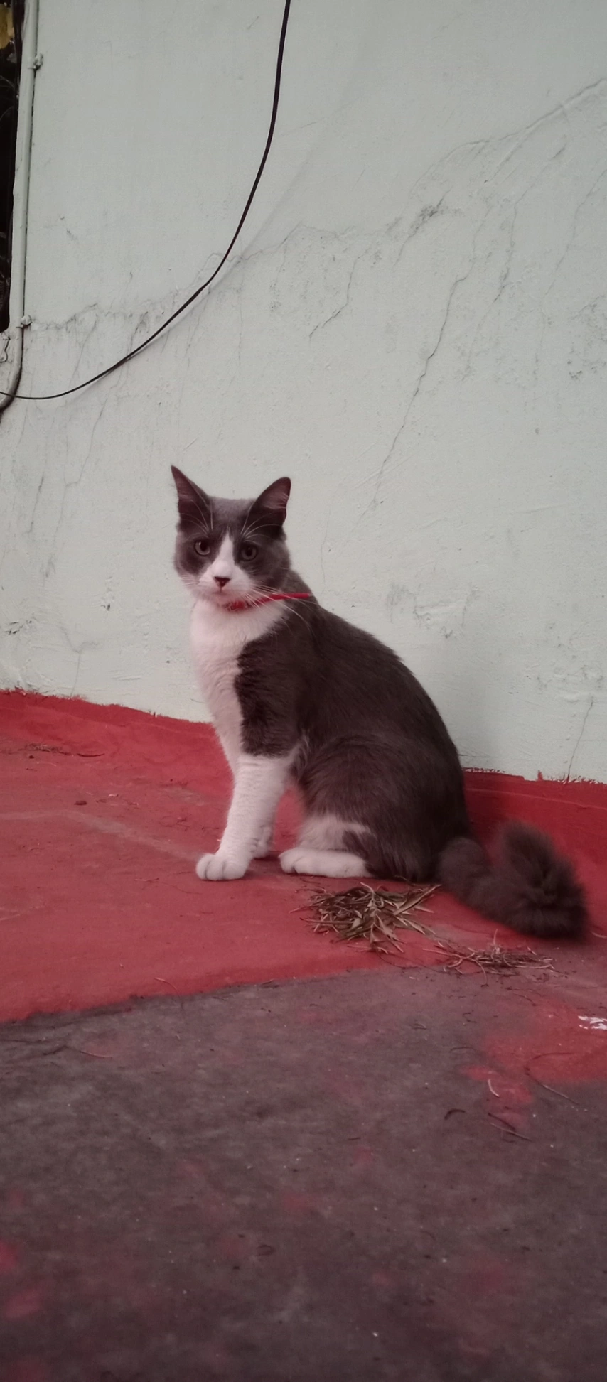 Gatas pequeñas, de menos de 1 año de edad. La mayor ya está castrada. La pequeña aún no está en edad de castración. Son grises atigradas con algunos detalles en blanco.
