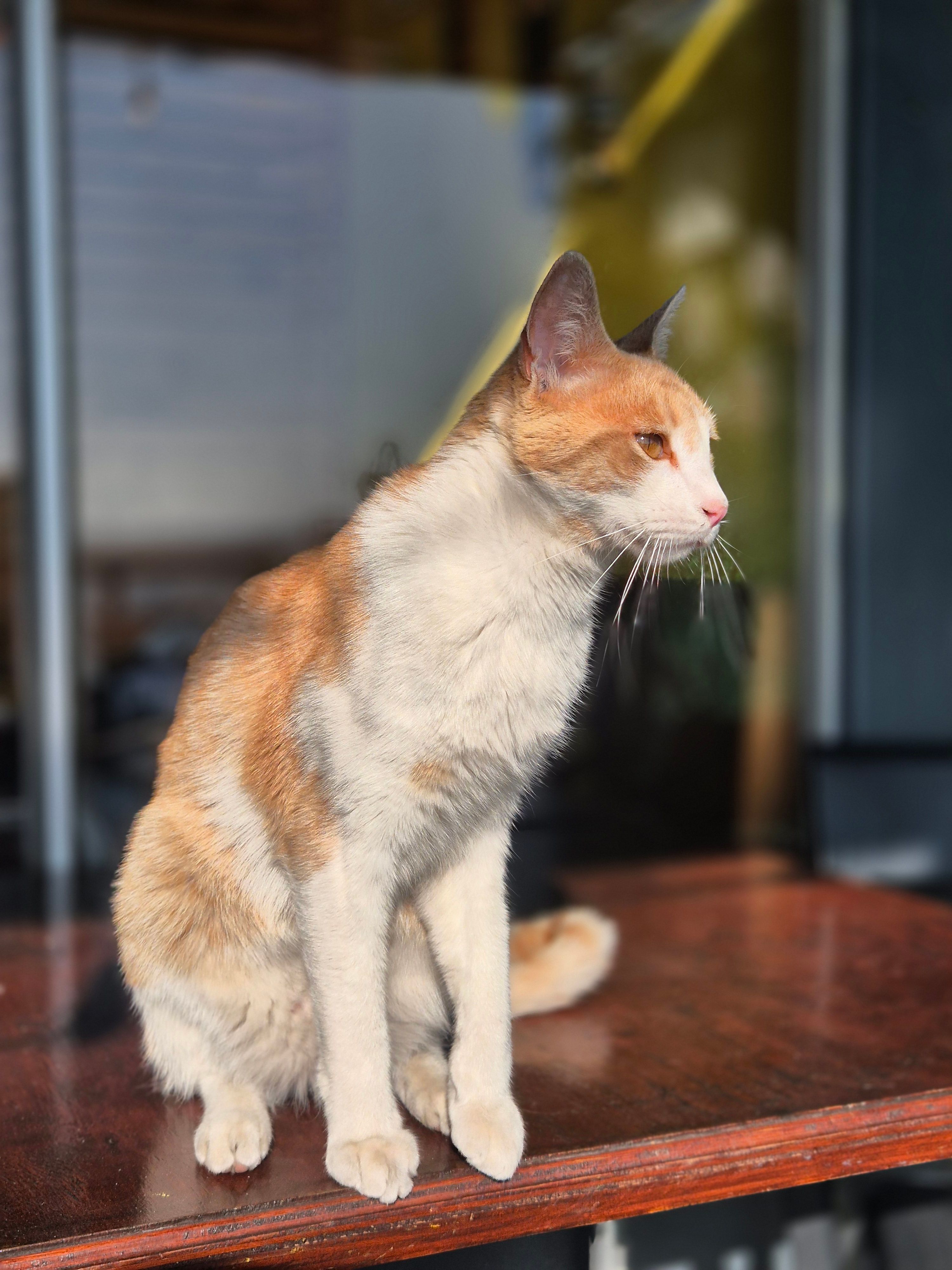Caramelo es un gatito muy sociable, se da fon facilidad, un poco travieso Es blanco con naranjo y ojitos color piel .