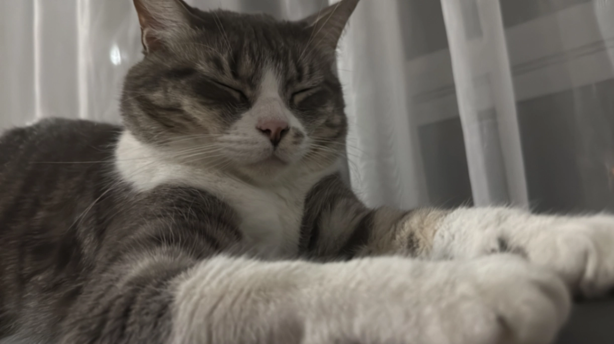 Hembra, de pelaje gris con su carita, estómago y mitad de las patas blancas