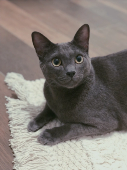 No tiene collar, es gordo, es muy dócil, los ojos son verdes y es un azul ruso, tiene 9 años