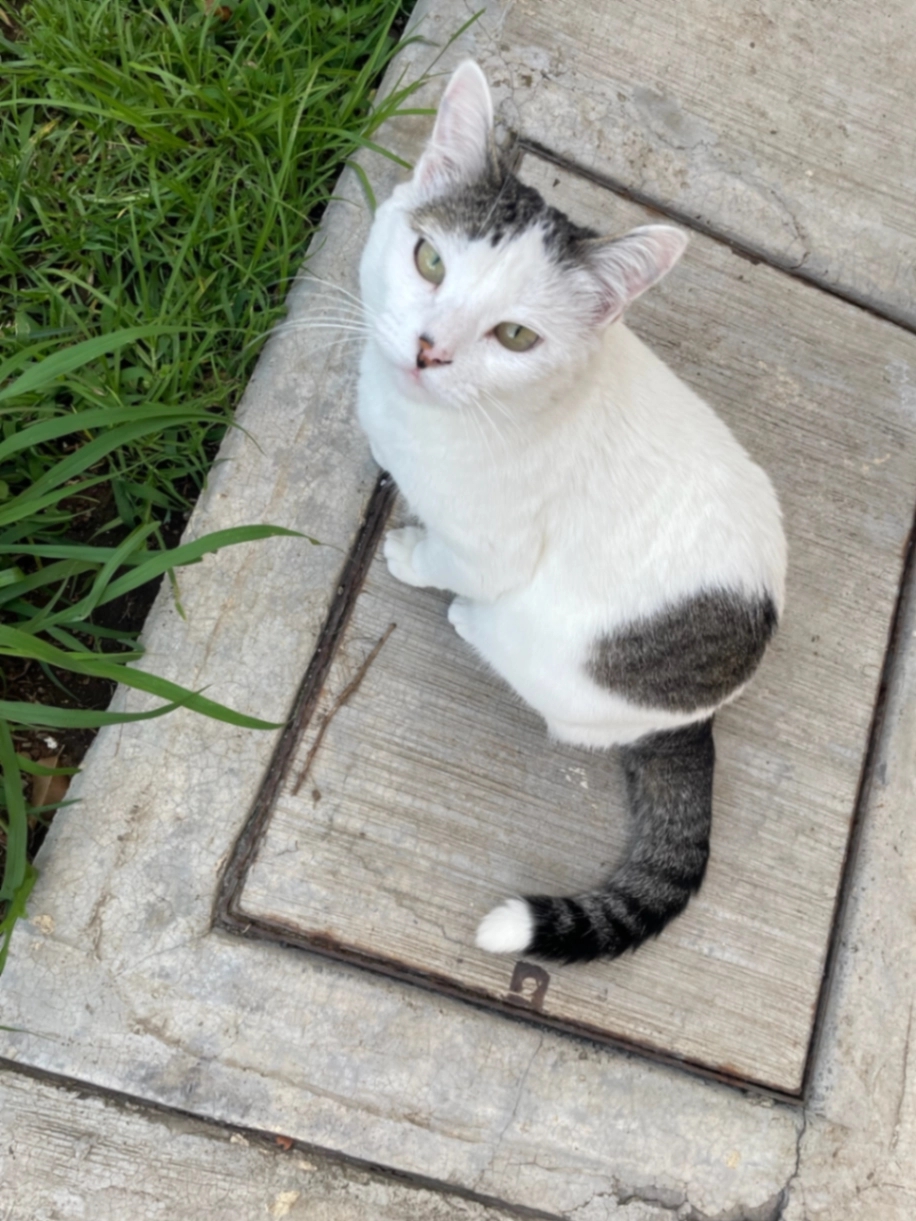 Tiene un lunar en la boca que parece herida, su cola es negra y nada más en la punta blanca, tiene manchas cafés