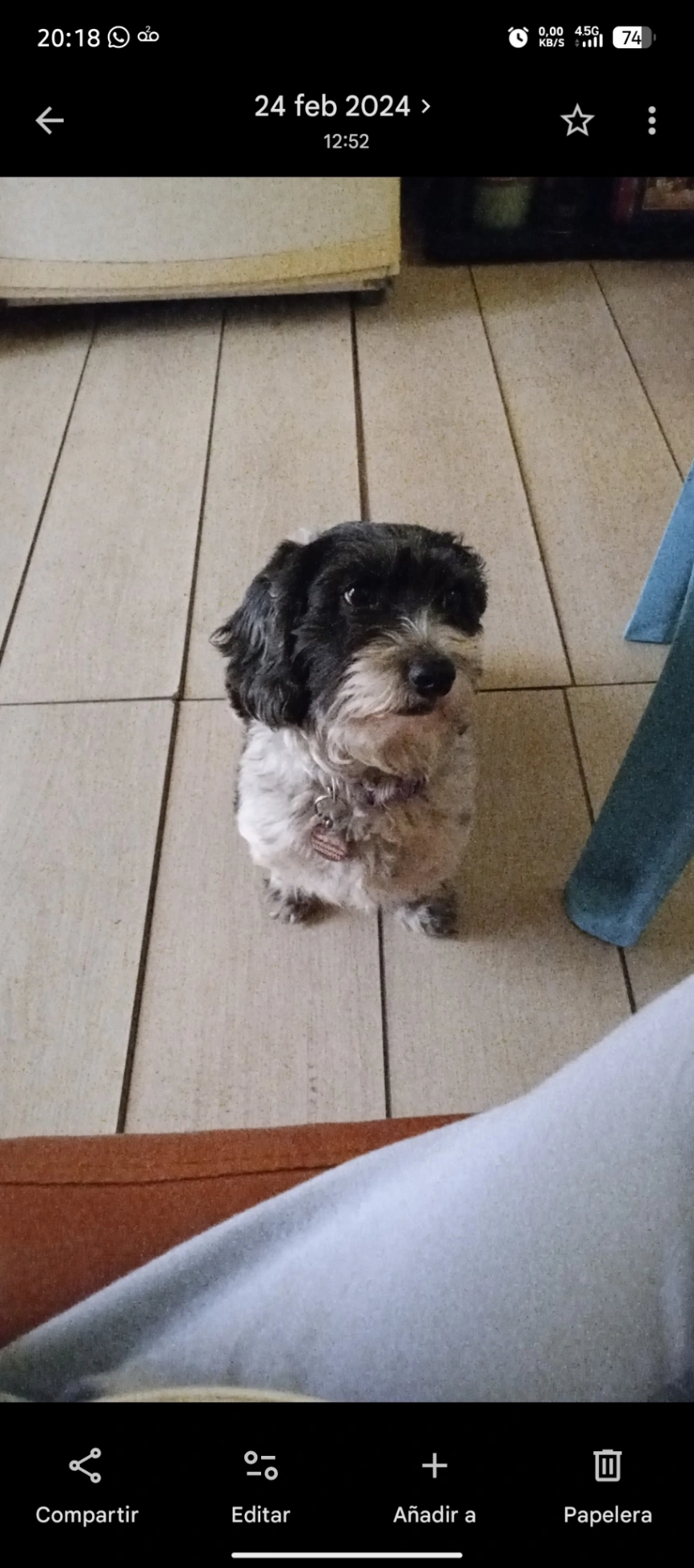 Perrita hembra, criolla, tamaño pequeño, color blanco y negro, pelaje largo, pero al momento de la pérdida se encontraba con pelaje corto, es tímida pero muy amigable, responde al nombre de chiss o chispita