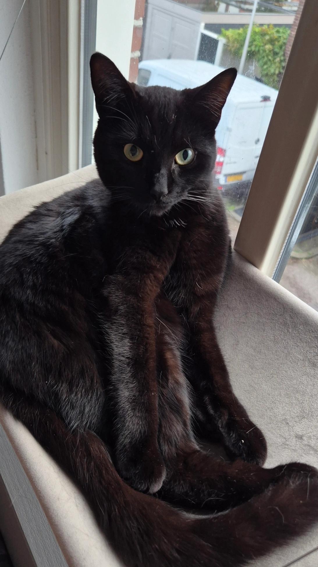 Vermist onze 15 jaar oude bijna blinde kater. Zwart met grote groene pupillen. Omgeving 2805 Agatha dekenstraat Sinds vanmorgen 31 maart vermist.