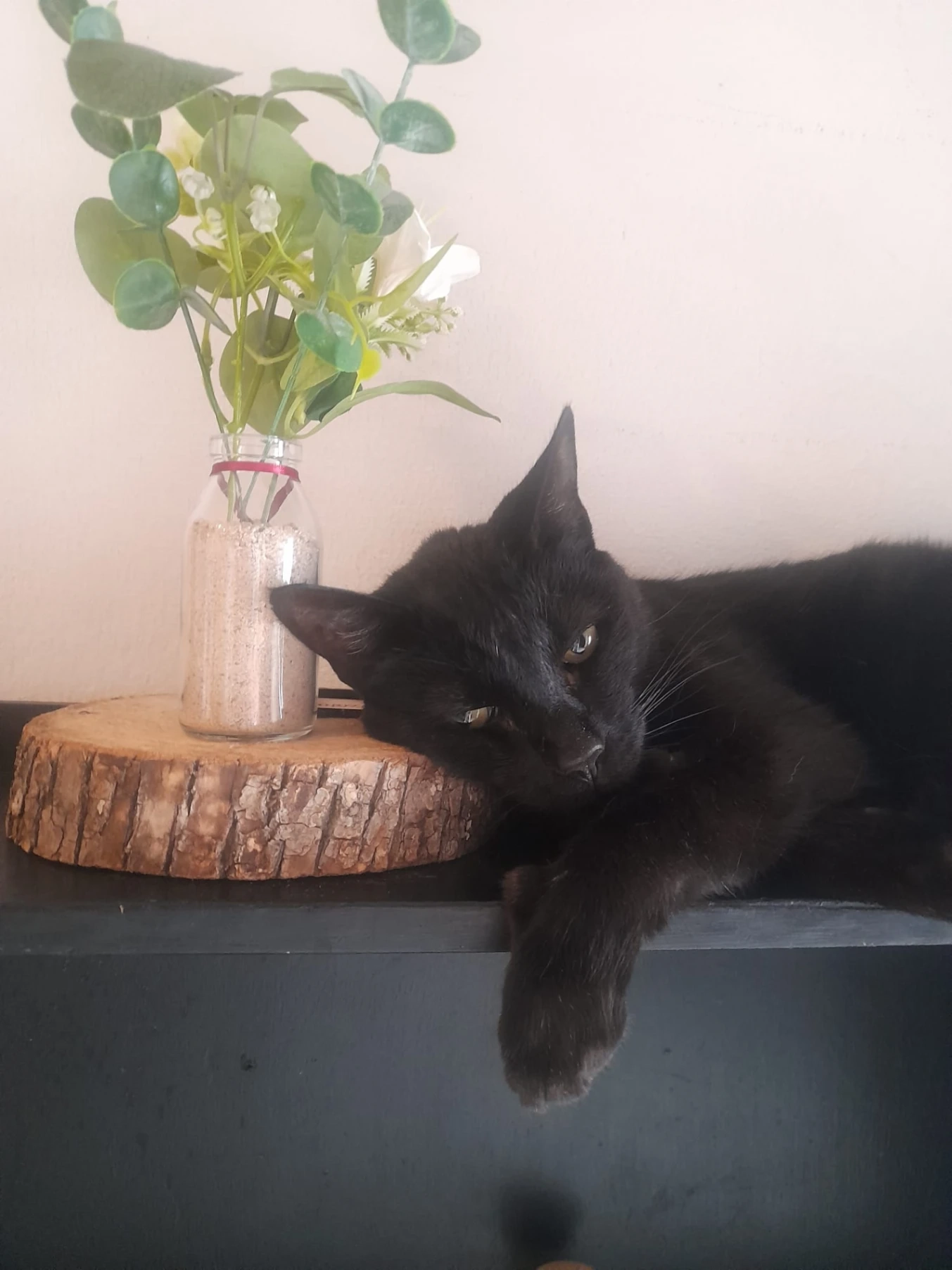 Se perdió en zona de Jacinto Vera. Es macho castrado de 10 meses aproximadamente. Es completamente negro con cola peluda tipo plumero