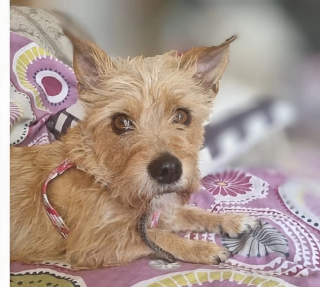 Es pequenia como chihuahua pero no es raja chihuahua tiene marcas de color cafes en el cuerpo