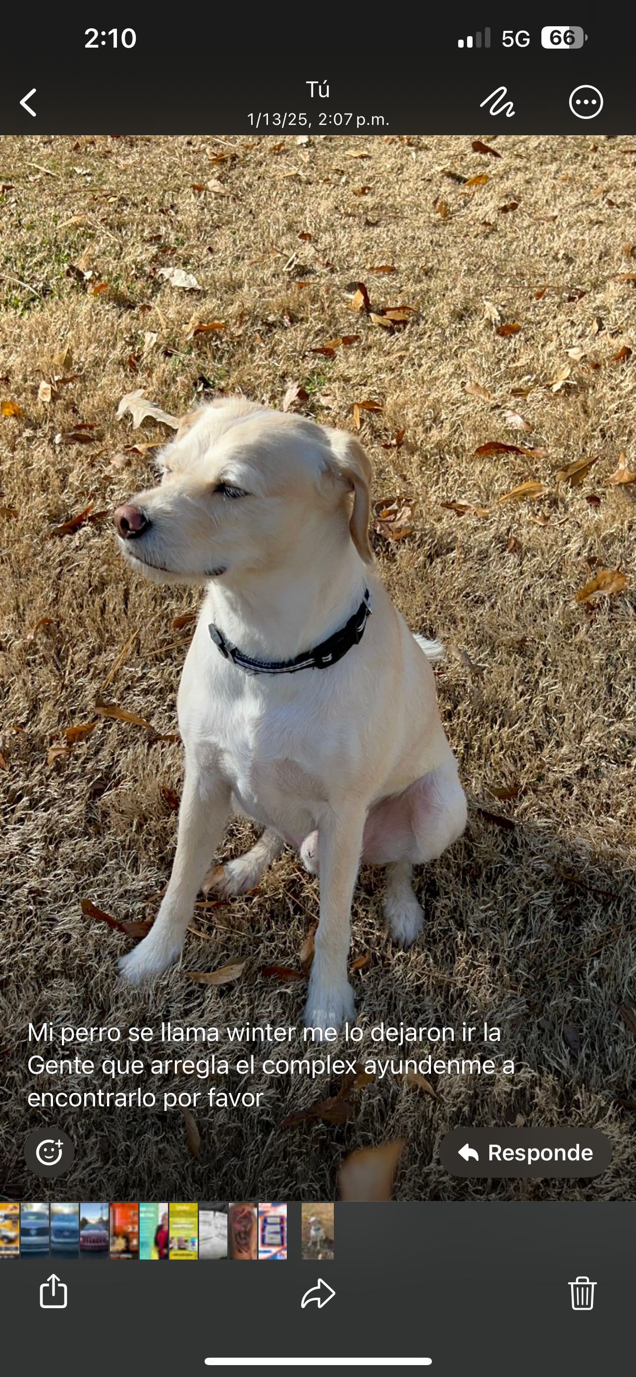 If he calls his name, he will come to you. He’s a really nice dog gets along with any buddy or any other dog. I took his collar off because he was itching around his neck and I fell asleep. I got up to let him out to go to the bathroom. He started barking. I went to go check to find out he took off. He loves to hunt so I’m sure he’s looking for any rabbits or birds.