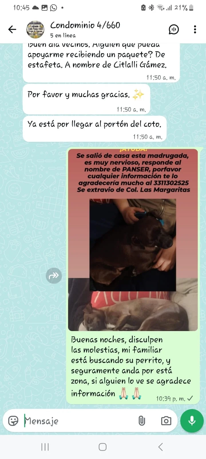 Miko fue visto por última vez la noche de 24 de diciembre por Col. El vigía zapopan jalisco, es un perrito chihuahua beige con una franja café en el lomo y ojos claros.