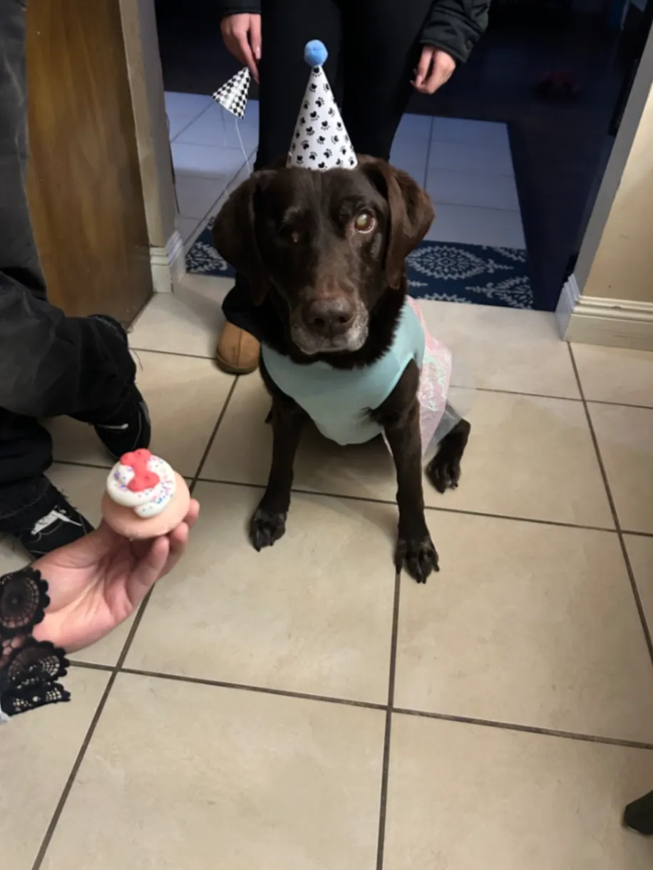 She’s missing one eye and is blind