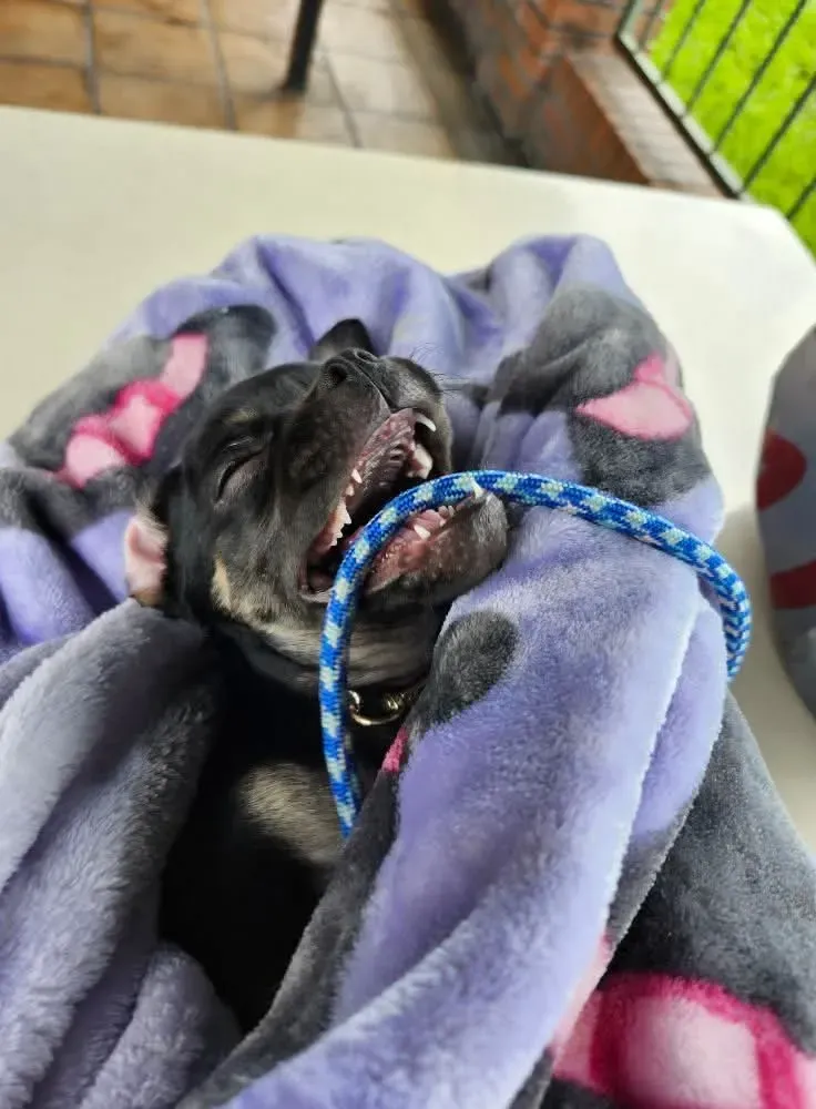 She's a Chihuahua pug puppy and she's super sweet please don't yell at her she's sensitive and I love her attitude and personality