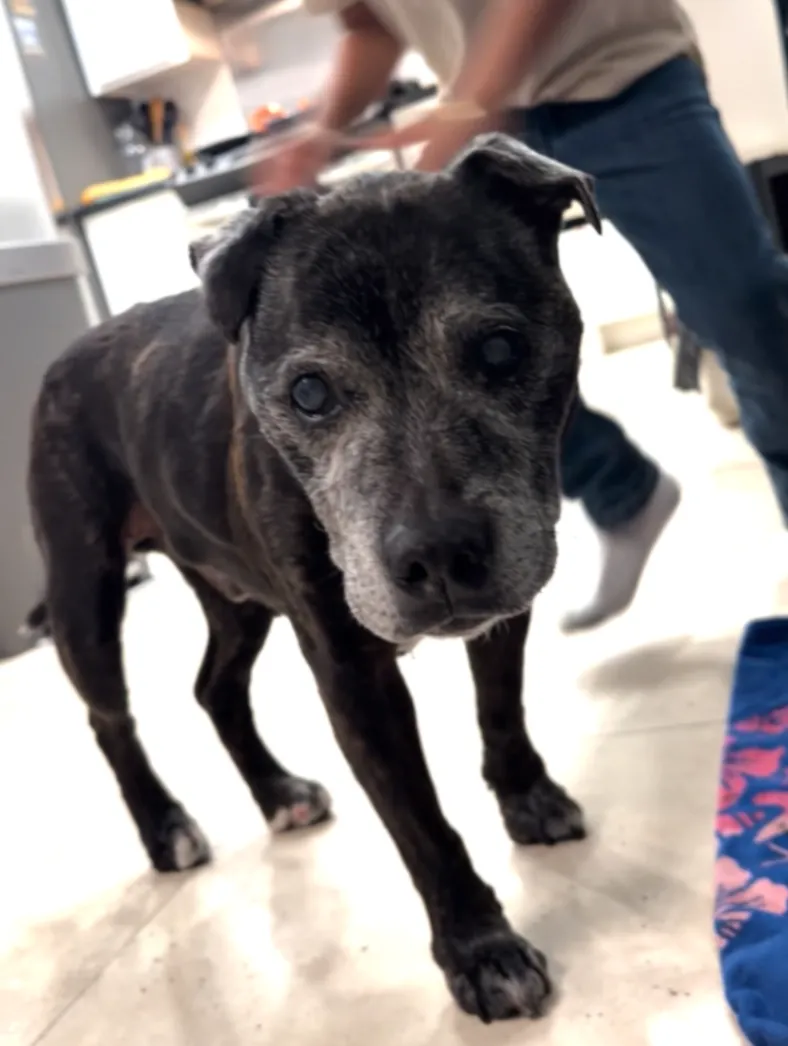 Sweet old dog. He’s blind and deaf.