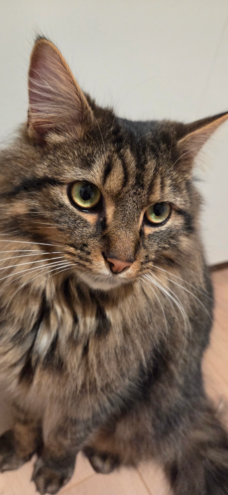 Mia est pas très grande ( hauteur de genou) très gentille, adore les câlins et ne ferais pas de mal a une mouche.