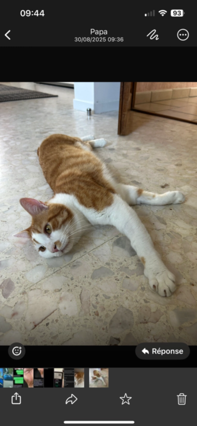 Roux et blanc aux Yeux verts clairs .Il est Castré et pucé