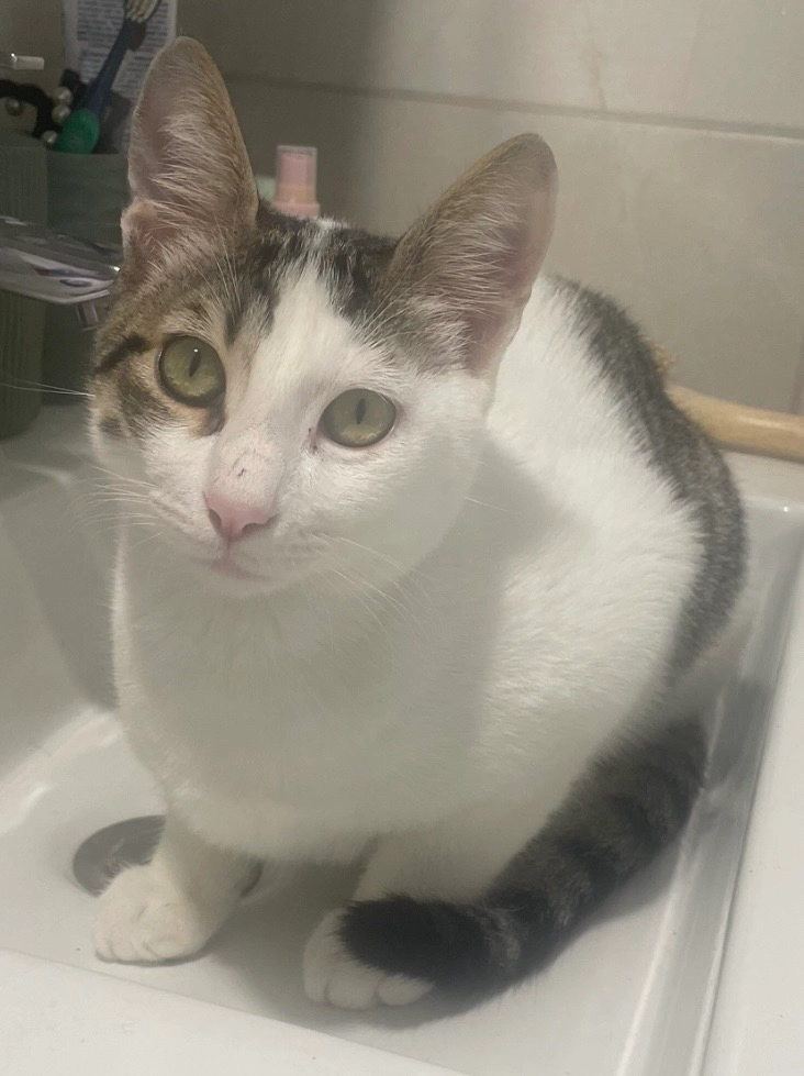 She is easily scared but very sweet and loves affection. She is about 4 years old.
