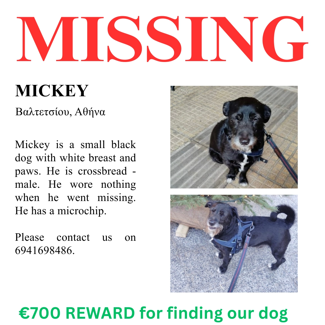 Small black dog with white breast ad paws. He is crossbread male. He wore nothing when he went missing. He has a microchip