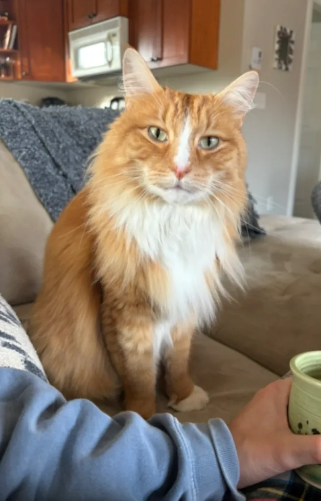 Friendly kitty, orange tabby with tattoo in ear. Missing since last Sunday.
