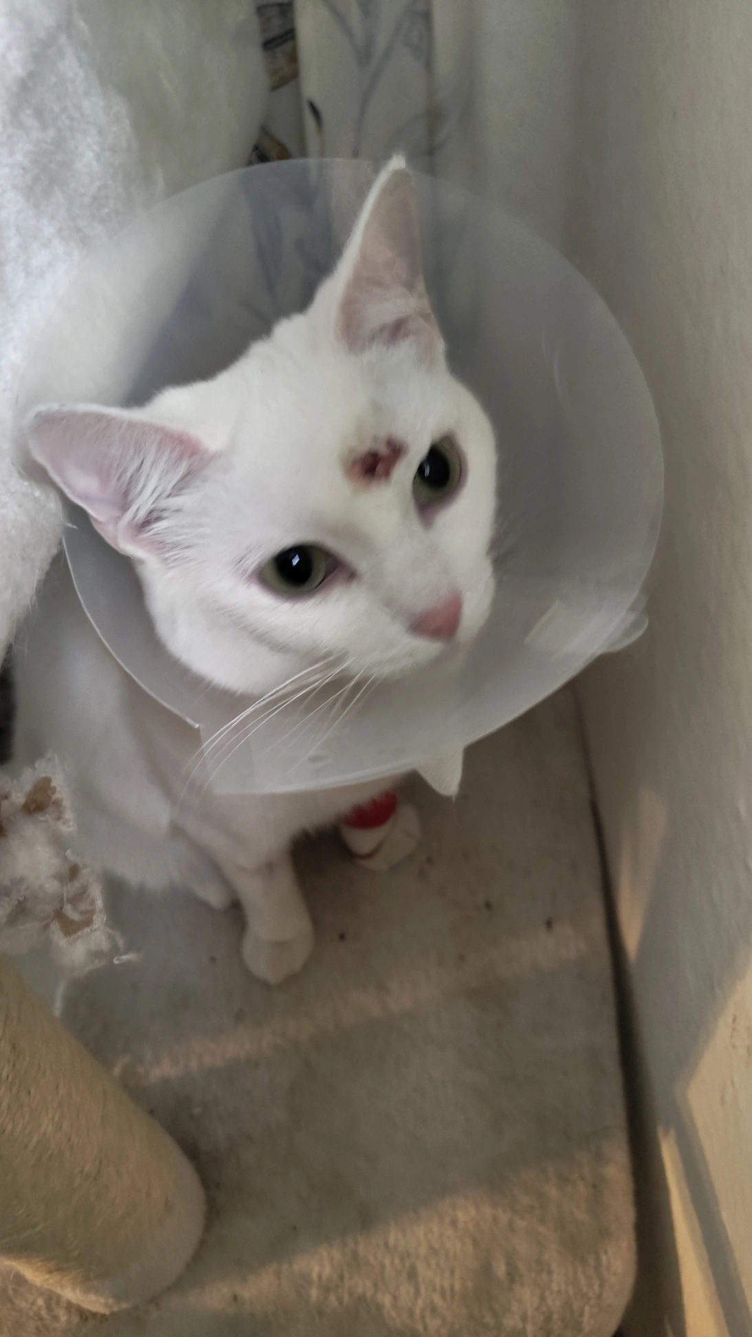 Weißes Fell und grüne Augen... Sehr zutraulich