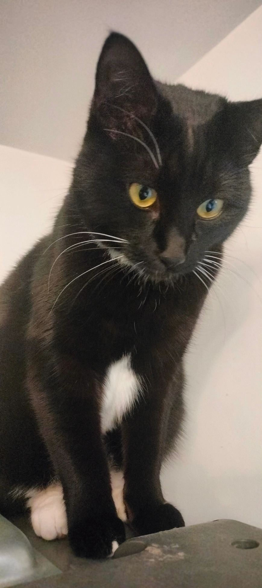 Circé femelle castree et pucee .a disparu le 10 mars dernier .elle a des pattes blanche a l'arrière et noires devant avec un doigt blanc , une toison blanche qui s'étale du coup jusqu au ventre . Très gentille un peu craintive . Si vous la voyez appelez nous sans hésiter .0626687451. merci beaucoup
