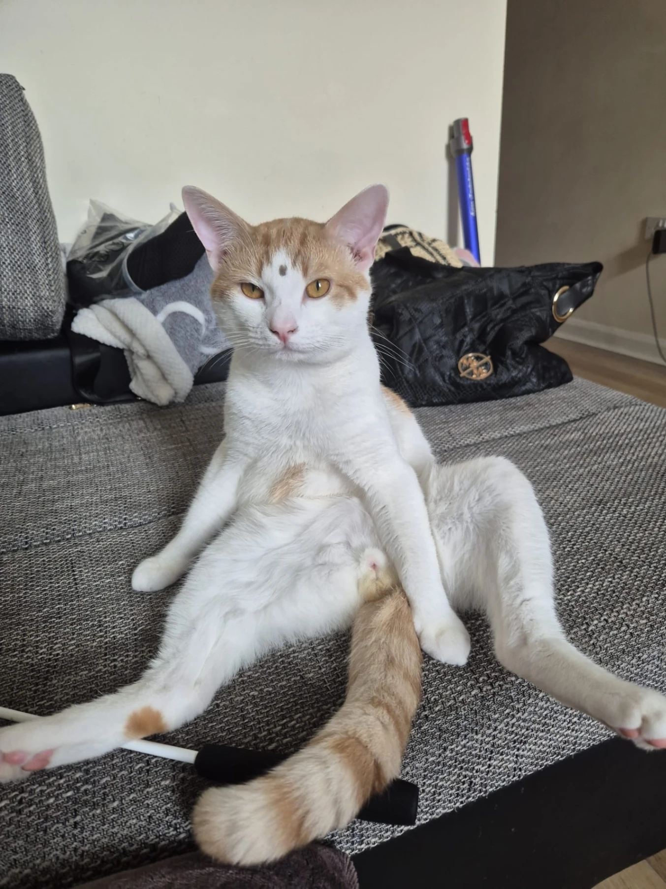 White and ginger cat male very cuite and big frendly he is house cat. I do anything to have him back.
