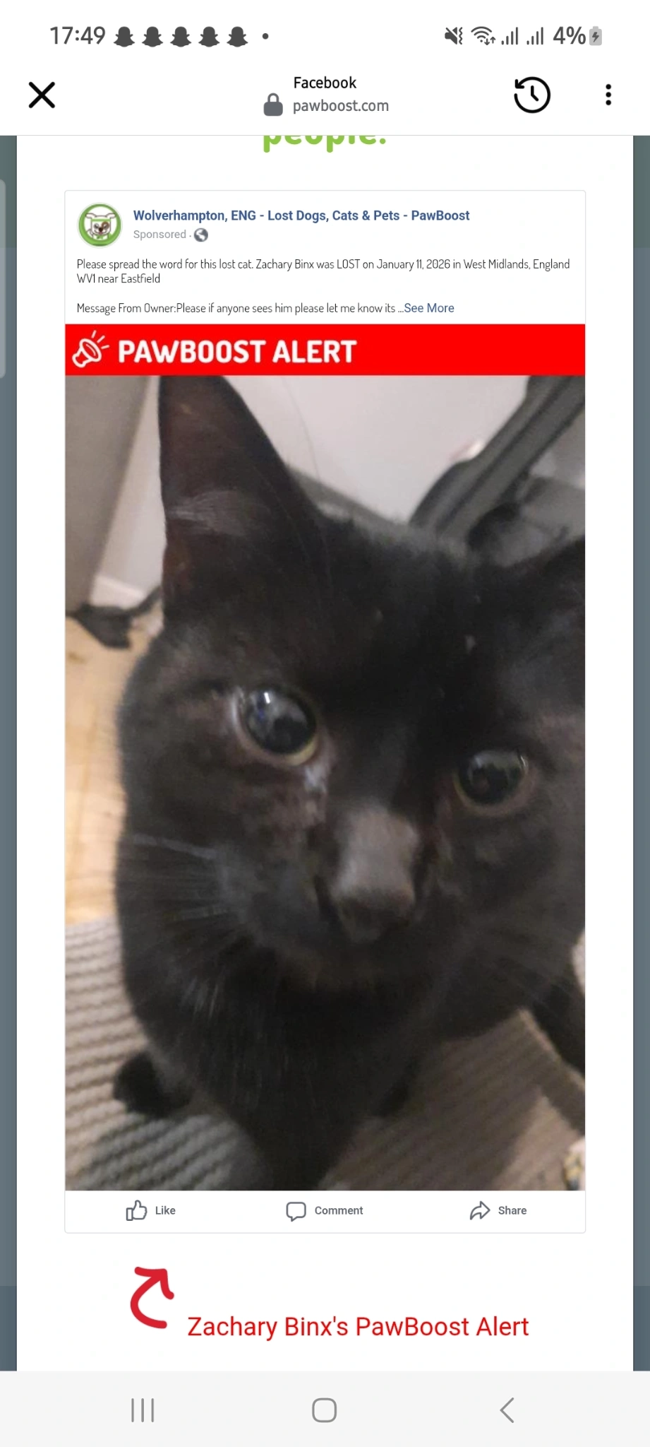 Hi I’m really worried there was a storm last night and he hasn’t come back which is very unusual, he loves his food and loves sitting with me getting lots of love , I had problems with him not liking a collar and I finally got him wearing one but some idiot kept taking it of him and he hasn’t had a chip put in yet ,,, he’s all I have in life plz help