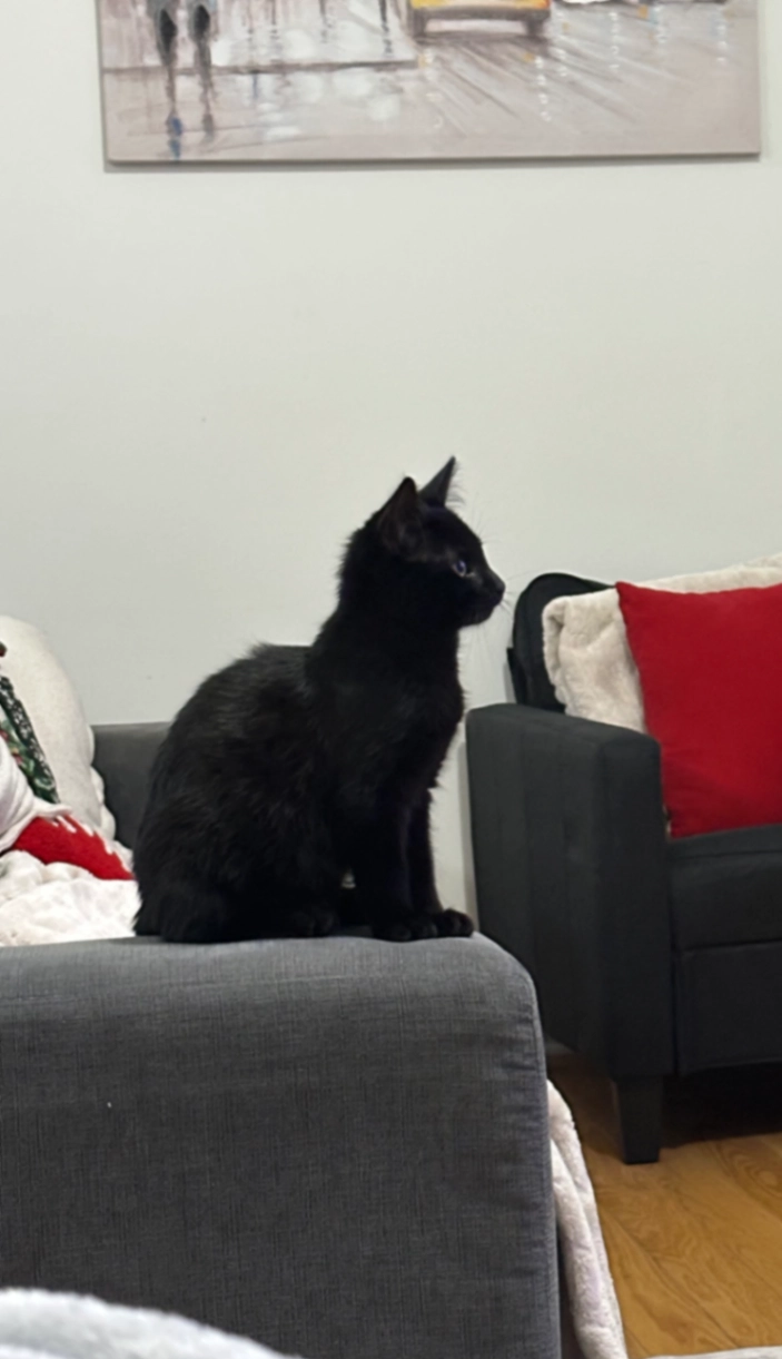Very friendly, recently neutered. Black cat