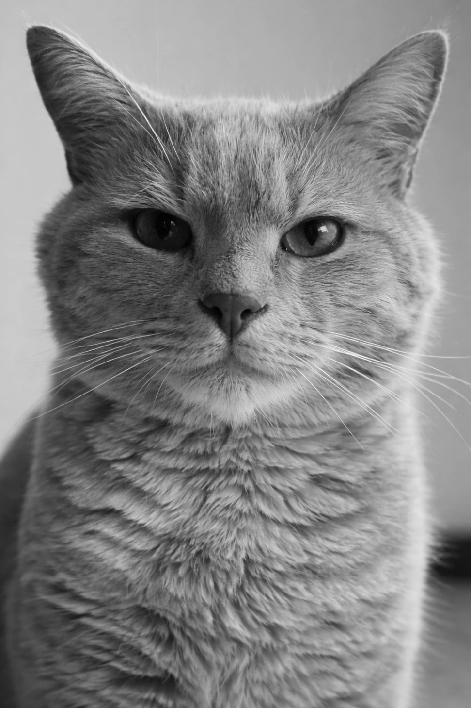 Chat de race British shortair beige, bien portant, beaucoup de touffe de poils sur le dos.