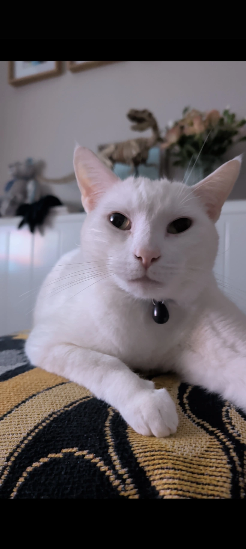 Black long hair, with white back feet, white tummy and white marking on his nose