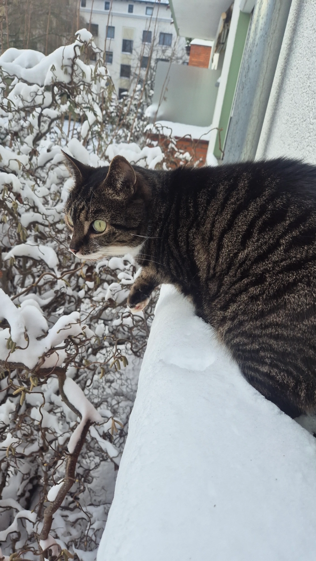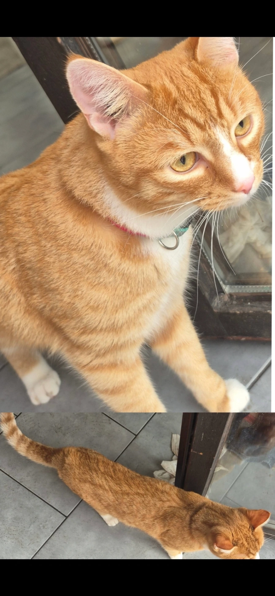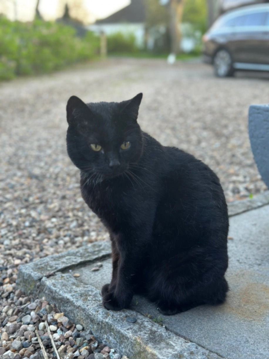 Er ist nicht gerne allein und macht auf sich aufmerksam. Normalerweise hält er sich bei uns im Innenhof/Garten auf, ist aber an die Straße entwischt.