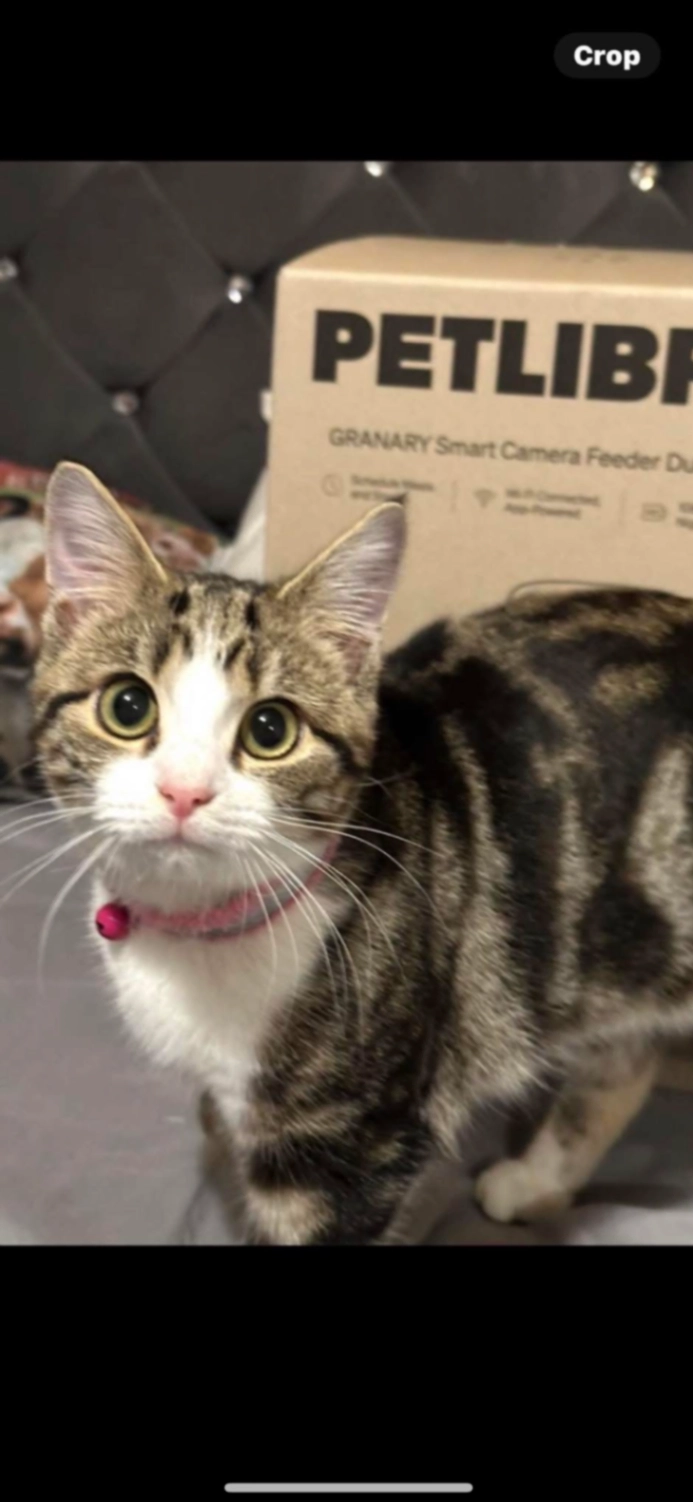 Dottie is a petite cat, a year old. She’s epileptic so is medicated twice a day. She snuck out on the 30th and hasn’t returned and has now missed 4 doses of her medication which could be fatal. She’s a very loving cat and loves people’s attention, she’s wearing a red collar with jewels on.