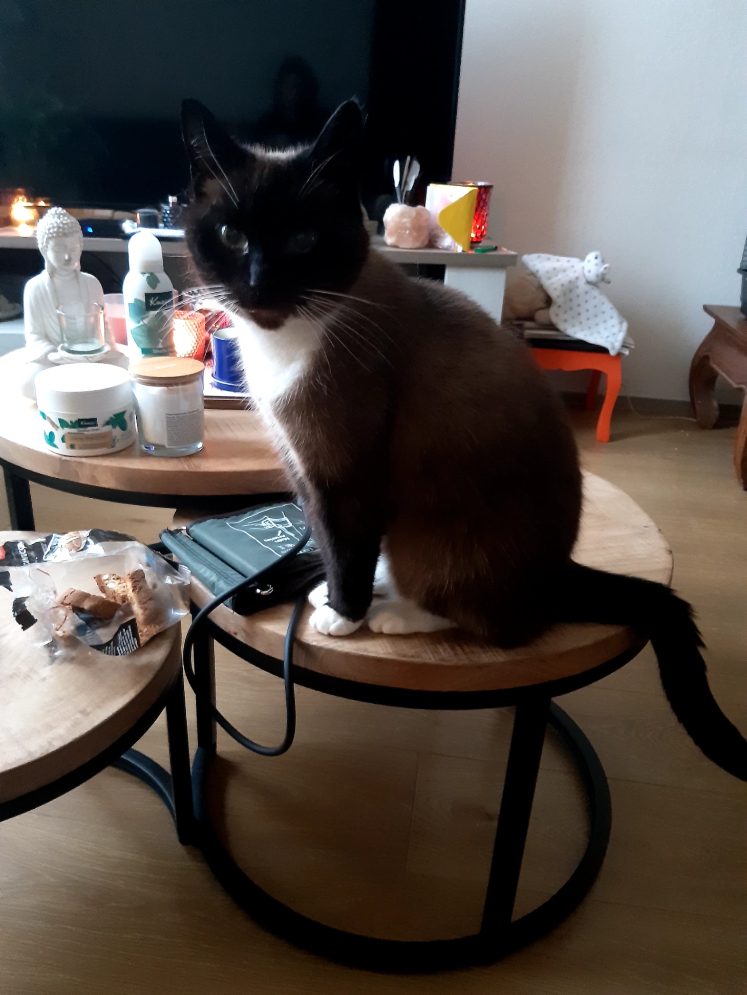 5 jaar geleden kwam ze in mijn leven, lief aanhankelijk, poes, ze is gechipt, Siamees. Ze is geznd eet en drinkt goed, ze gaat graag buiten maar het is niets voor haar niet terug te keren, ze is bijna 24 uur weg wel zat ze vannacht om 3 uur bij de achterdeur die ik open deed maar ze wou ineens niet binnen, ik wou een deze dagen dierenarts bezoeken want ze plast in huis, drinkt veel en at weinig de laatste dagen, met deze kou extra zorgen om haar, ze is aanhankelijk met een eigen wil.