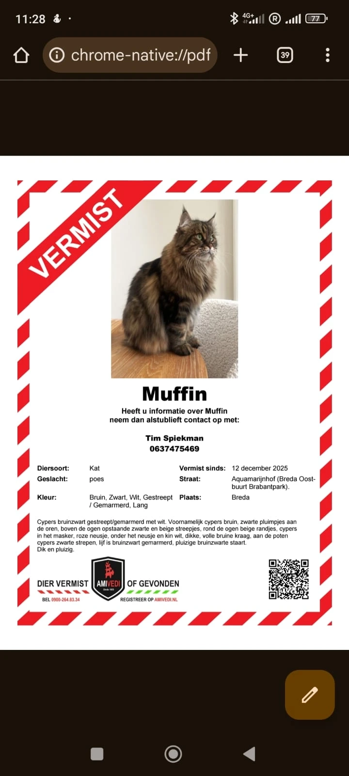 Chats perdus / trouvés à Breda