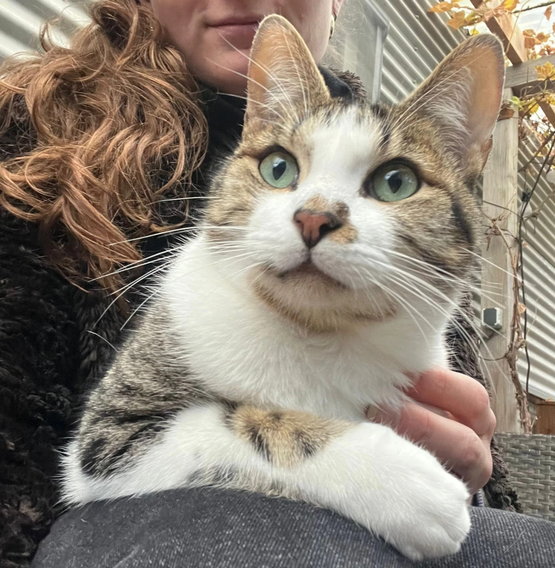 Lien is een gecastreerd mannetje en is gechipt. Hij is wit en wit/bruin gecyperd (vacht).