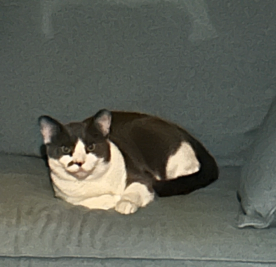 Oreo can be very sweet, but skittish as well. He is chipped, but no collar. (He looses them)