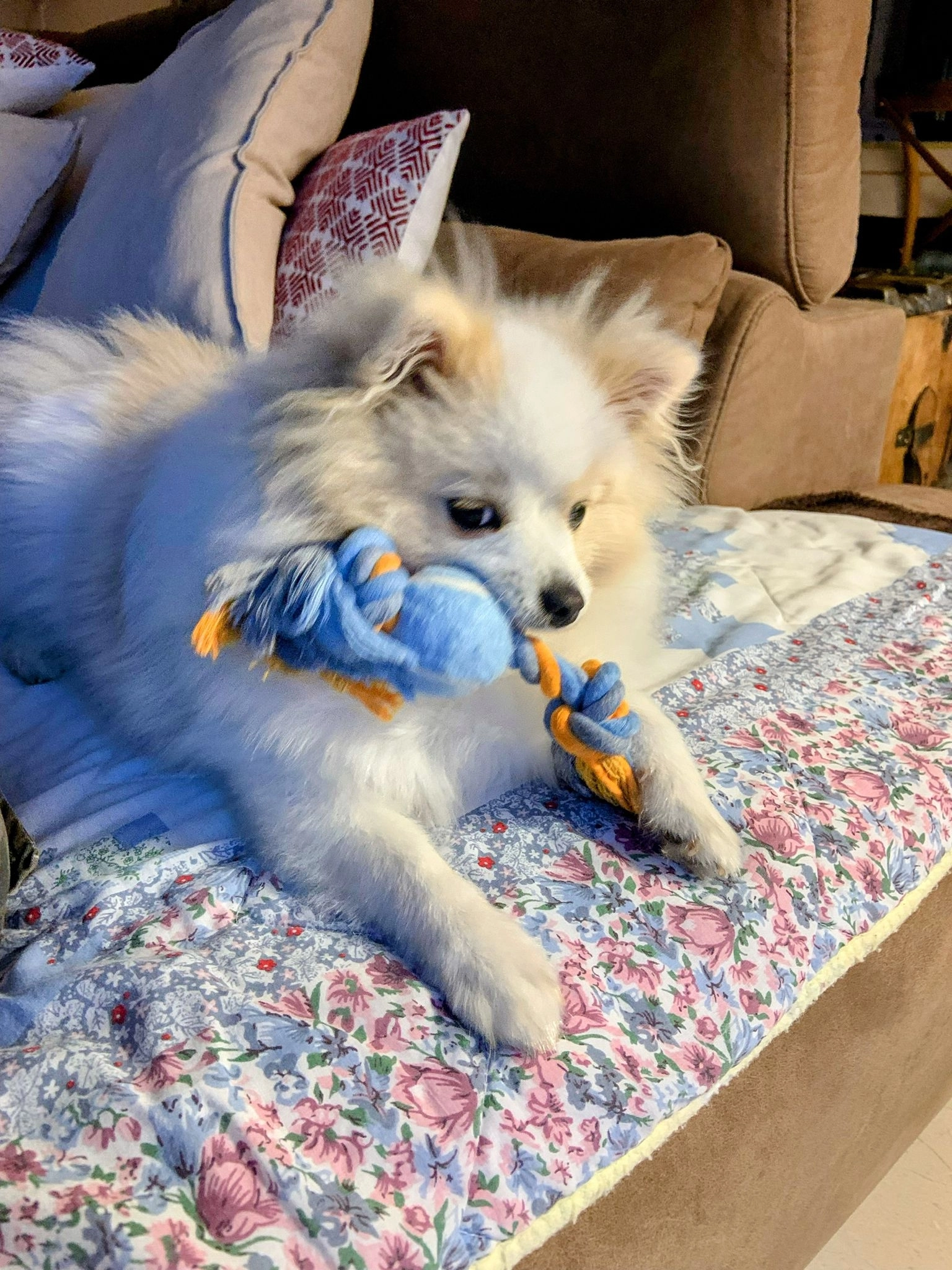 Spitz nain femmelle blanche et beige pas craintive, perdue à 20h en descendant les poubelles.... 😭😭😭