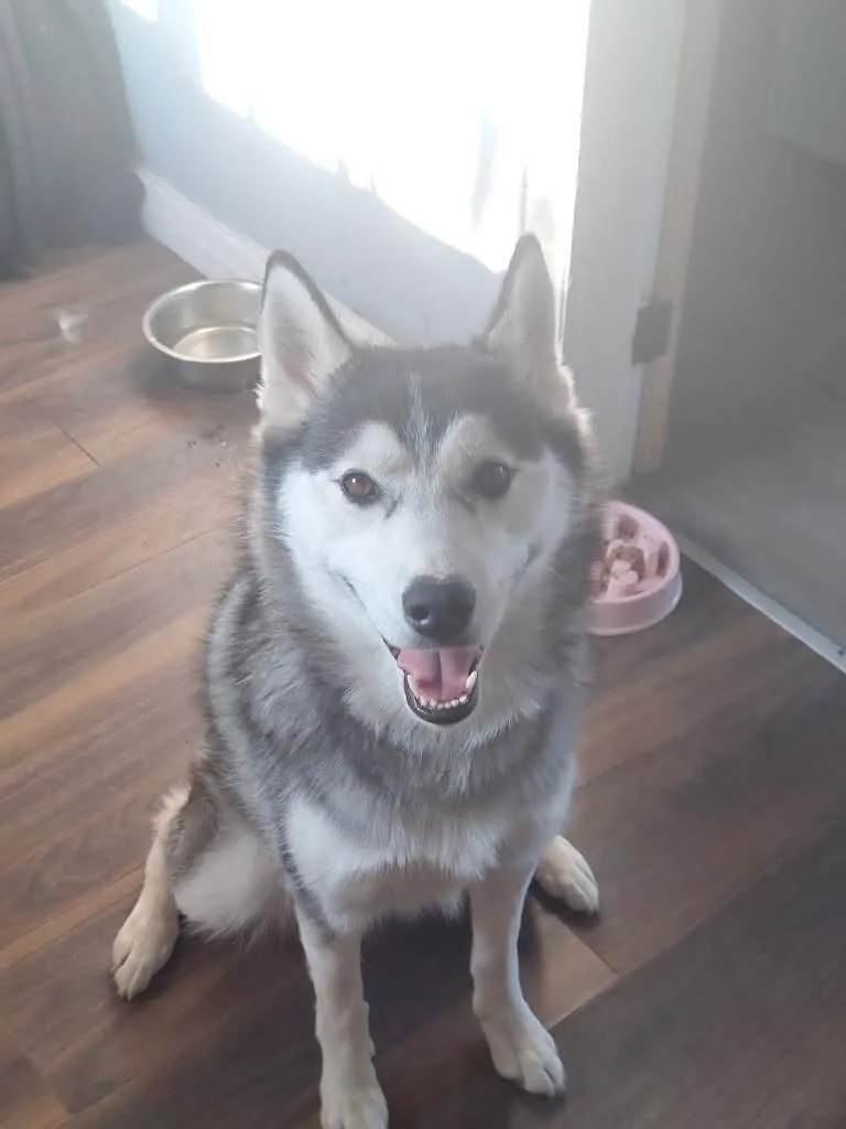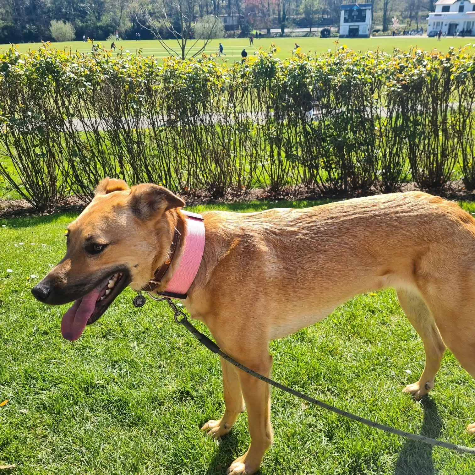 She is a rescue and is quite shy, also sensitive to loud noises. She ran away from a temporary home 04.06 at around 2