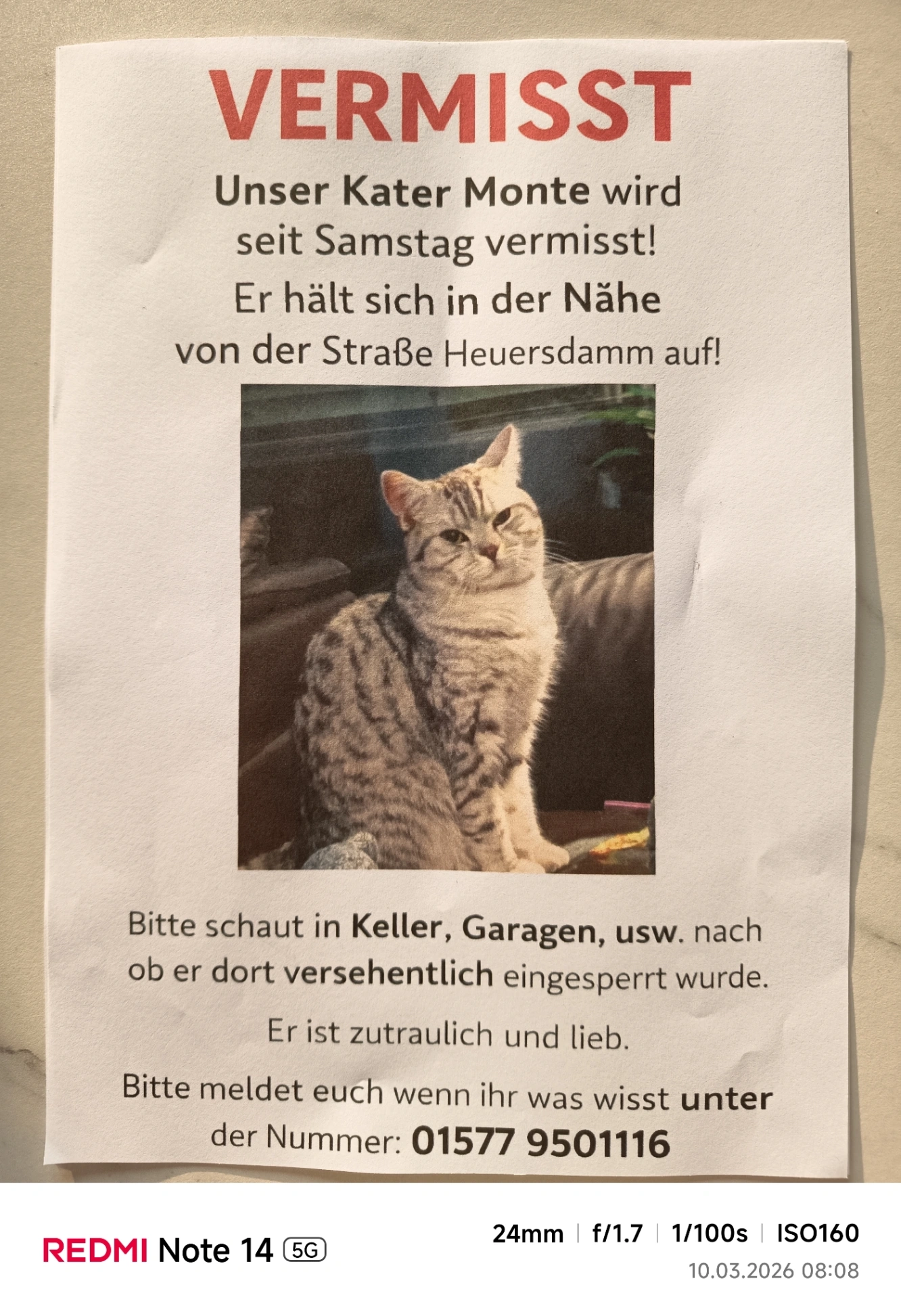 Hast du Monte gesehen? Bitte hilf uns und schau auf Dachböden, in Garagen, Schuppen und Außenbereichen nach.