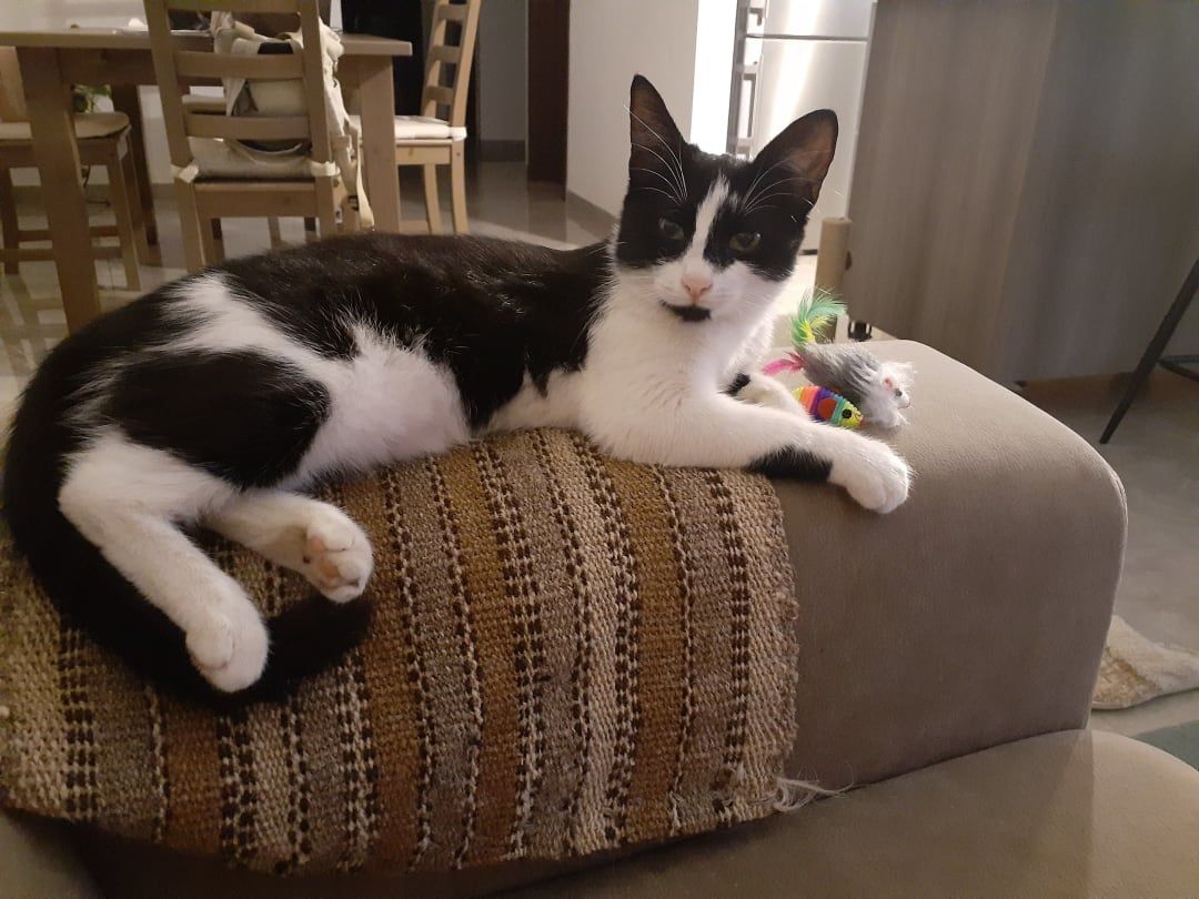 tush(тушь) was last seen on the evening of 16.06.2025 near yosef/balfur. the cat is 7 years old, weight is 3kg. tush doesn't bite. she has short and shiny black fur, long thin tail a small dark spot under right pupil and a broken fang, she has a chip and is fully vaccinated